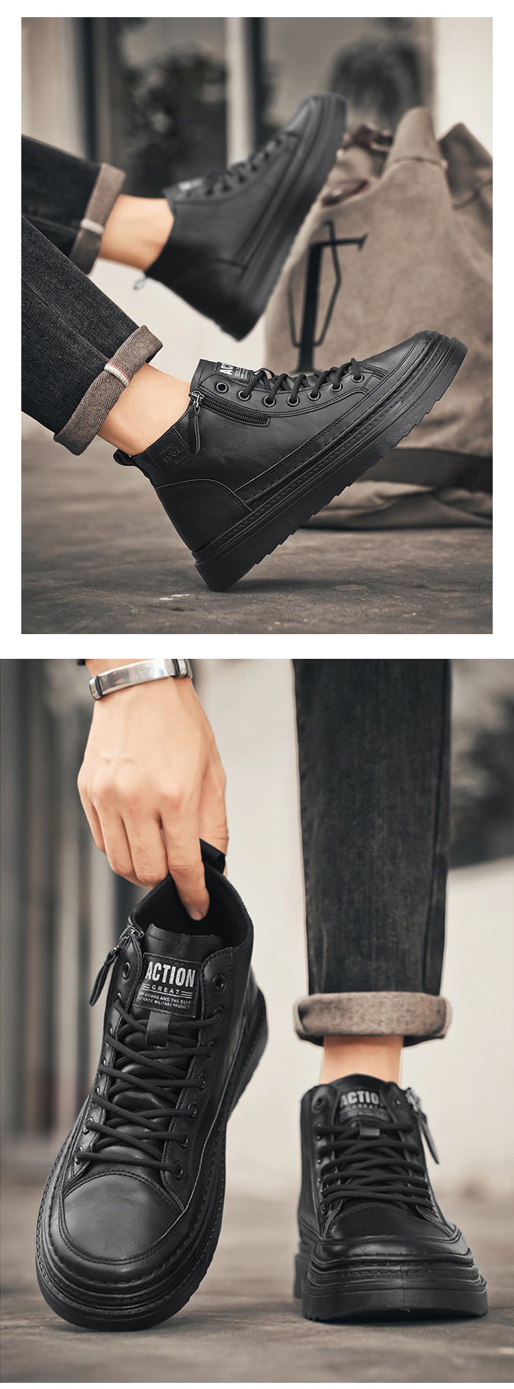 ハイカットジッパー付きマーチンブーツメンズ